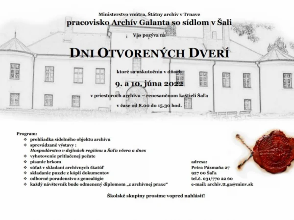 Píšu brkom, vyrobia si pečatidlo a dozvedia sa, ako žili Šaľania pred stáročiami. Aj o tom je deň otvorených dverí v šalianskom kaštieli. Môžete sa prísť pozrieť alebo prihlásiť skupinu zo školy, deň otvorených dverí bude 9. a 10. júna 2022. V prílohe nájdete viac informácií.